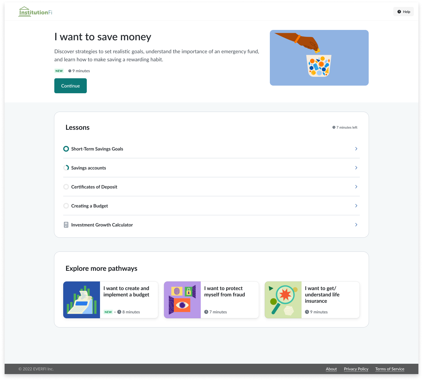 Achieve, EVERFI’s flagship consumer financial education product, was completely redesigned as a result of a discovery research study to better serve business, customer, and user needs.