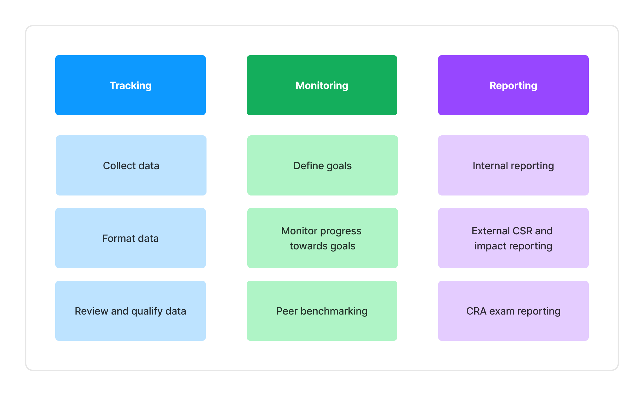 Monitoring: defining CRA goals, monitoring progress, and benchmarking against peer institutions